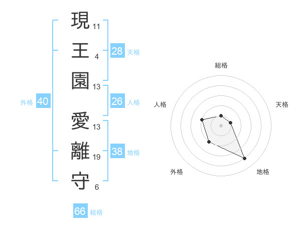 現王園 愛離守さんを姓名の画数から五運を鑑定