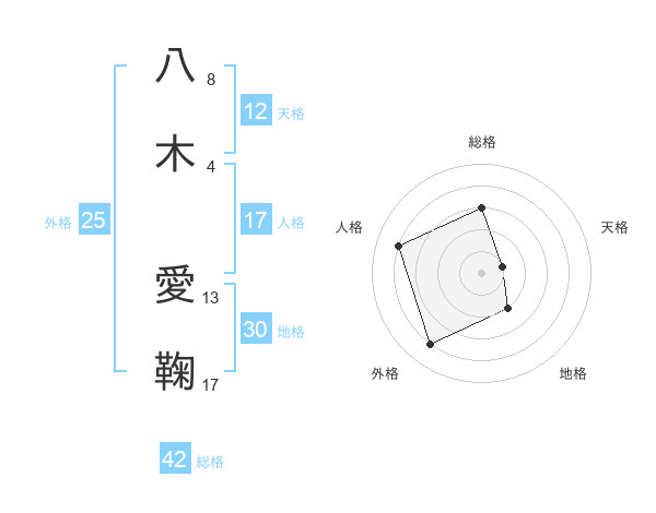 八木 愛鞠さんの人格は17画の4点!