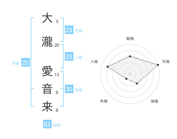 大瀧 愛音来さんを姓名の画数から五運を鑑定