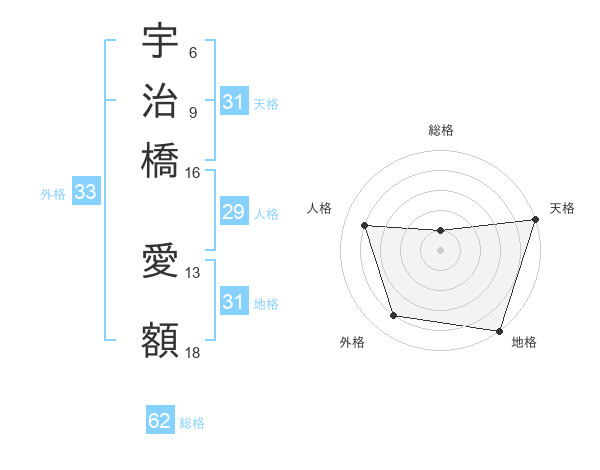 宇治橋 愛額さんを姓名の画数から五運を鑑定