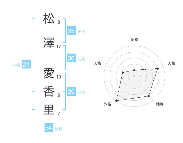 松澤 愛香里さんの外格は24画の5点!