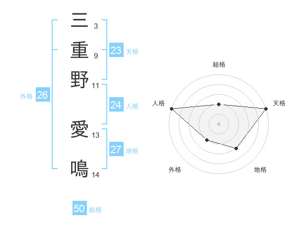 三重野 愛鳴さんの天格は23画の5点!