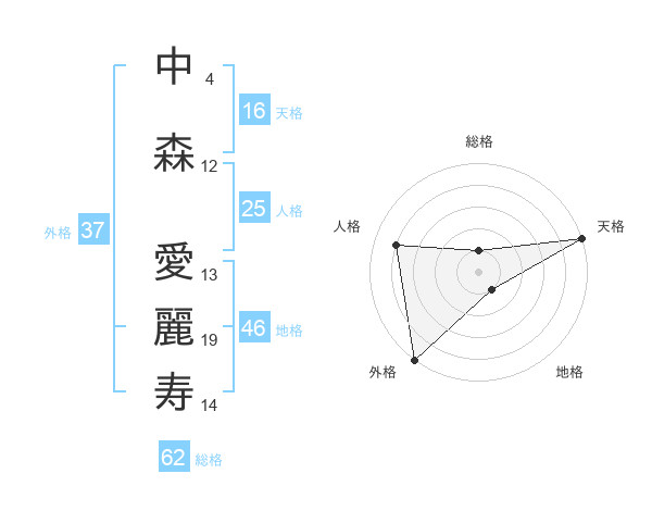 中森 愛麗寿さんを姓名の画数から五運を鑑定