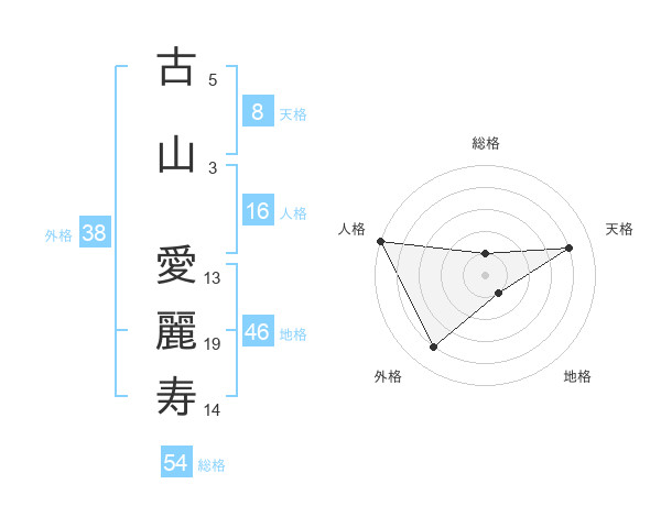 古山 愛麗寿さんを姓名の画数から五運を鑑定