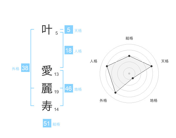 叶 愛麗寿さんを姓名の画数から五運を鑑定