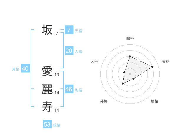 坂 愛麗寿さんを姓名の画数から五運を鑑定