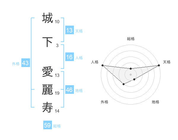 城下 愛麗寿さんを姓名の画数から五運を鑑定
