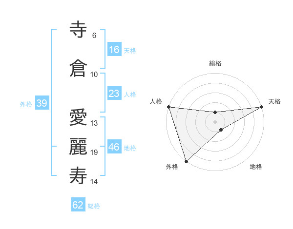 寺倉 愛麗寿さんの外格は39画の5点!