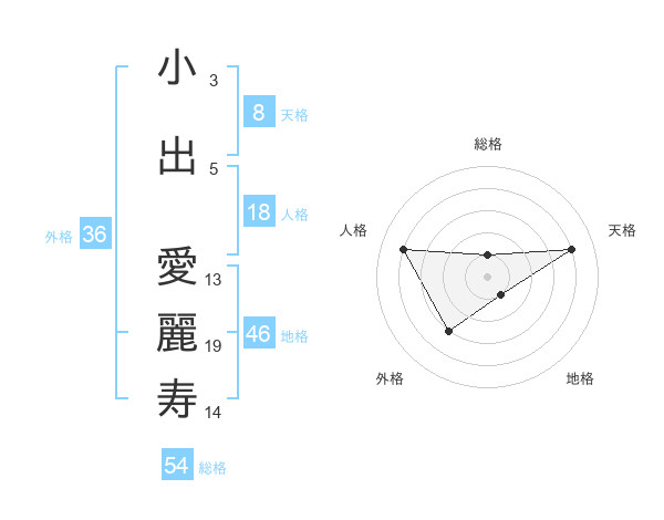 小出 愛麗寿さんを姓名の画数から五運を鑑定