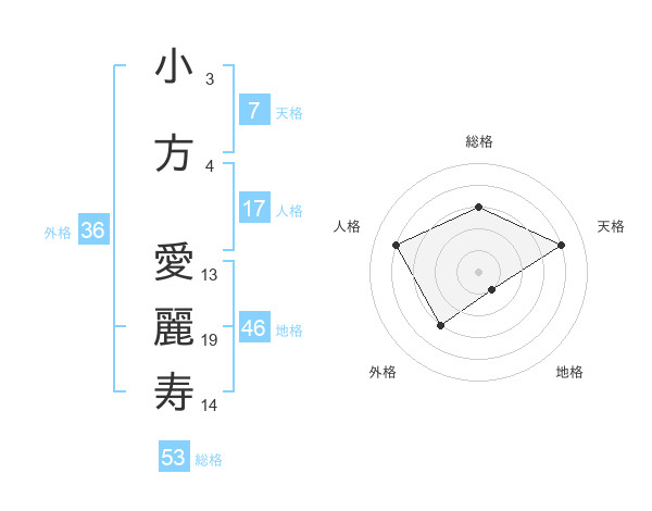 小方 愛麗寿さんを姓名の画数から五運を鑑定