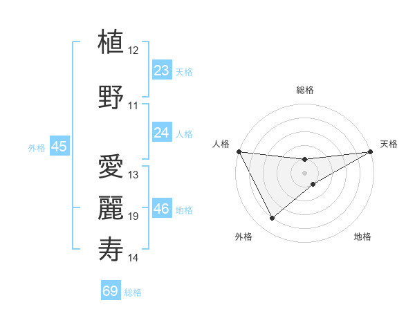 植野 愛麗寿さんの天格は23画の5点!