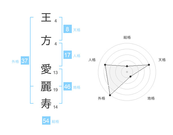 王方 愛麗寿さんを姓名の画数から五運を鑑定