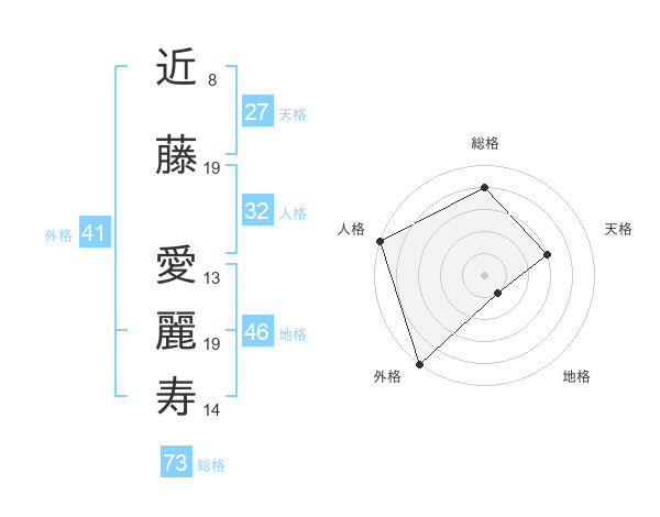 近藤 愛麗寿さんの総格は73画の4点!