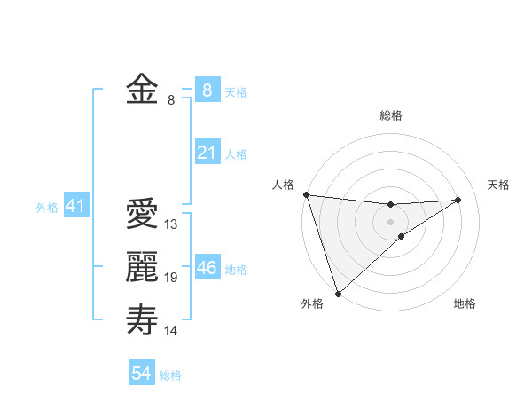 金 愛麗寿さんを姓名の画数から五運を鑑定