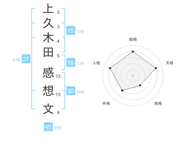 上久木田 感想文さんを姓名の画数から五運を鑑定