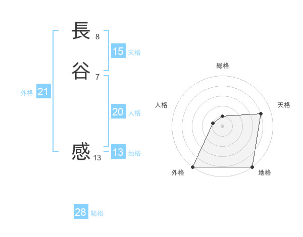 長谷 感さんの外格は21画の5点!