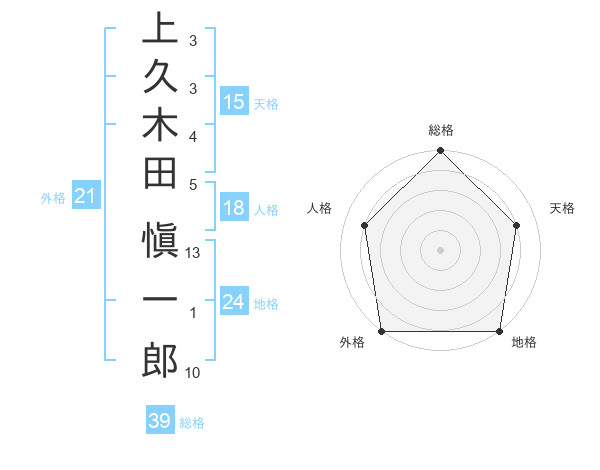 上久木田 愼一郎さんを姓名の画数から五運を鑑定