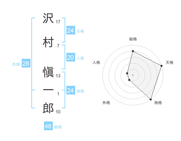沢村 愼一郎さんを姓名の画数から五運を鑑定