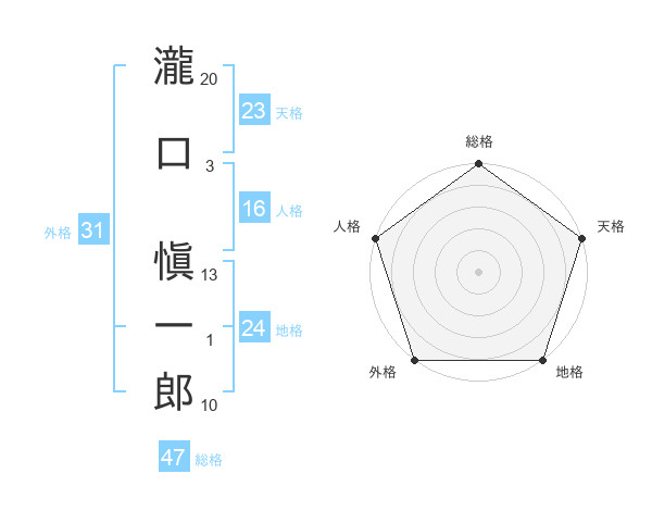 瀧口 愼一郎さんを姓名の画数から五運を鑑定