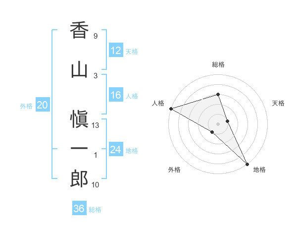 香山 愼一郎さんを姓名の画数から五運を鑑定