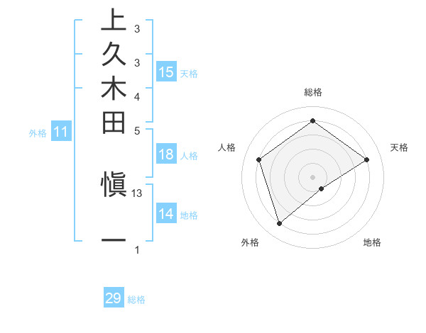 上久木田 愼一さんを姓名の画数から五運を鑑定