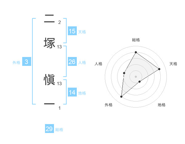 二塚 愼一さんを姓名の画数から五運を鑑定