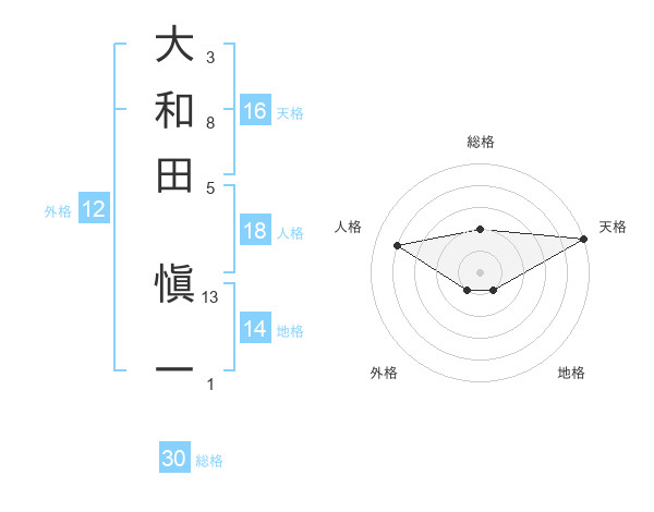 大和田 愼一さんの総格は30画の2点