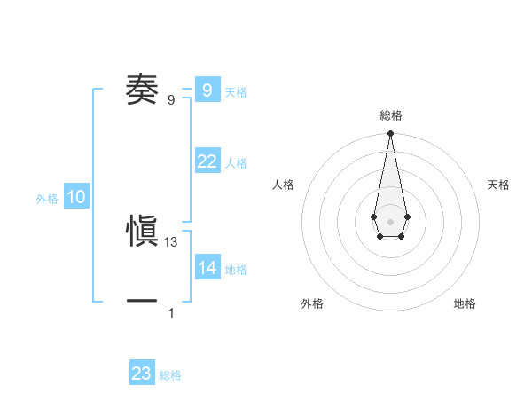 奏 愼一さんの総格は23画の5点!