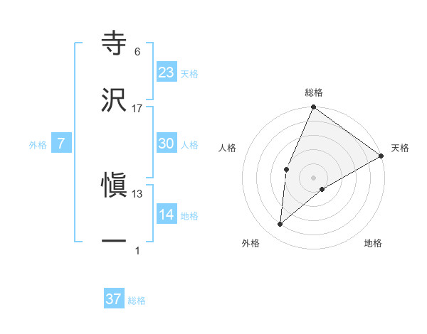 寺沢 愼一さんの天格は23画の5点!