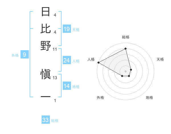 日比野 愼一さんを姓名の画数から五運を鑑定