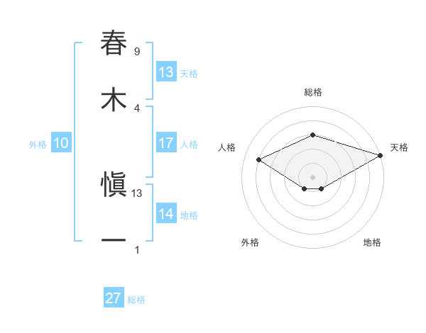 春木 愼一さんの天格は13画の5点!