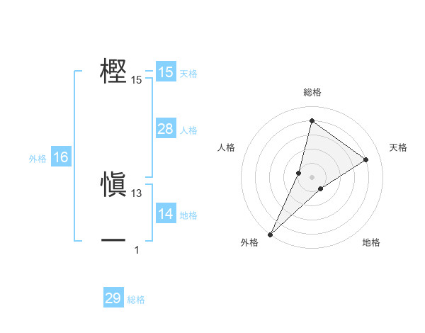 樫 愼一さんの天格は15画の4点!