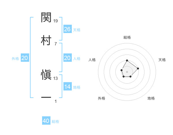 関村 愼一さんの総格は40画の2点!