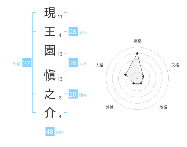現王園 愼之介さんの総格は48画の4点!