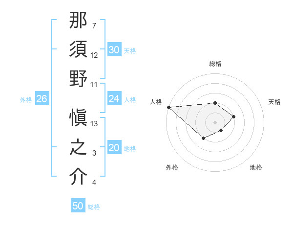 那須野 愼之介さんを姓名の画数から五運を鑑定