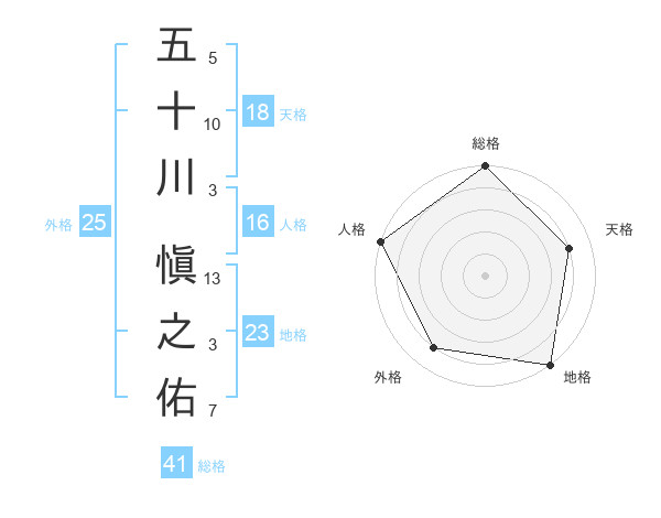 五十川 愼之佑さんを姓名の画数から五運を鑑定