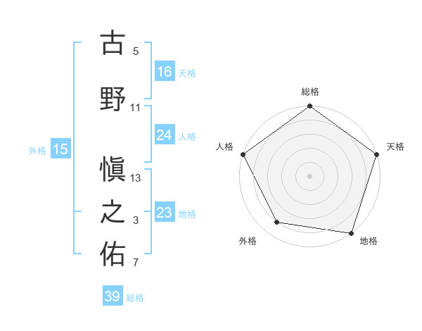 古野 愼之佑さんを姓名の画数から五運を鑑定