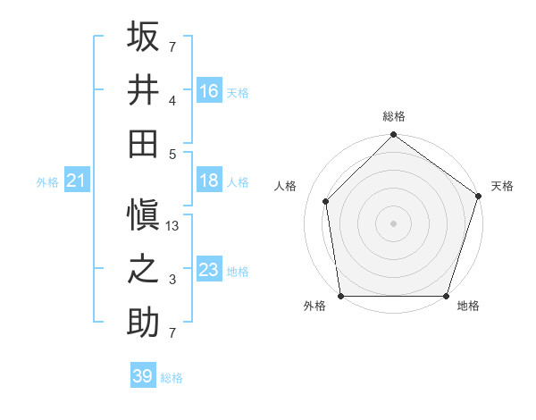坂井田 愼之助さんの外格は21画の5点