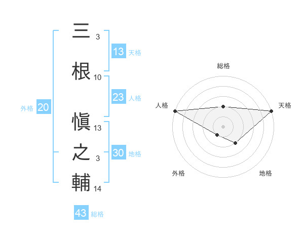 三根 愼之輔さんの天格は13画の5点!