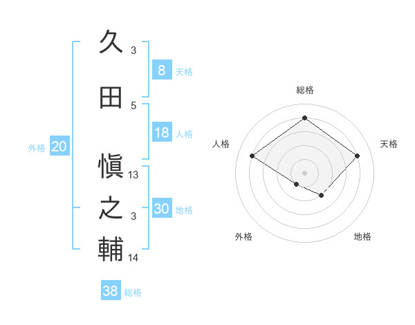 久田 愼之輔さんを姓名の画数から五運を鑑定