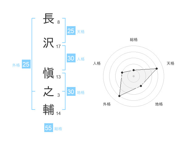 長沢 愼之輔さんを姓名の画数から五運を鑑定