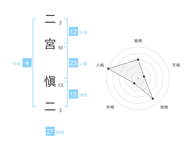 二宮 愼二さんの総格は27画の3点!