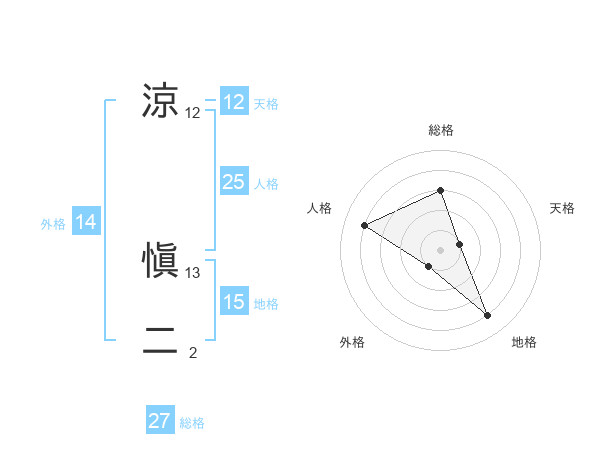 涼 愼二さんの総格は27画の3点!