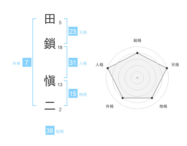 田鎖 愼二さんを姓名の画数から五運を鑑定