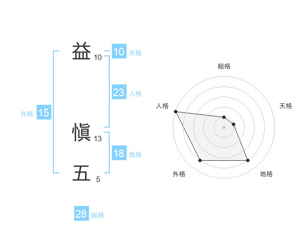益 愼五さんの総格は28画の1点!