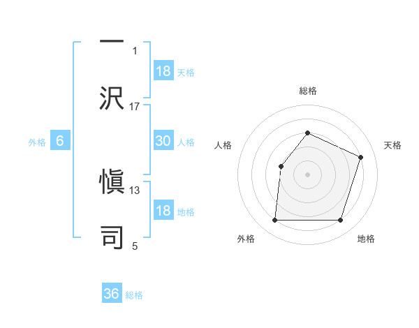 一沢 愼司さんを姓名の画数から五運を鑑定