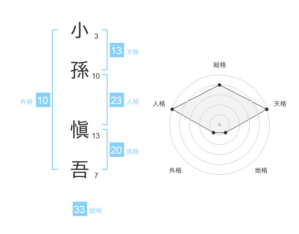 小孫 愼吾さんの天格は13画の5点!