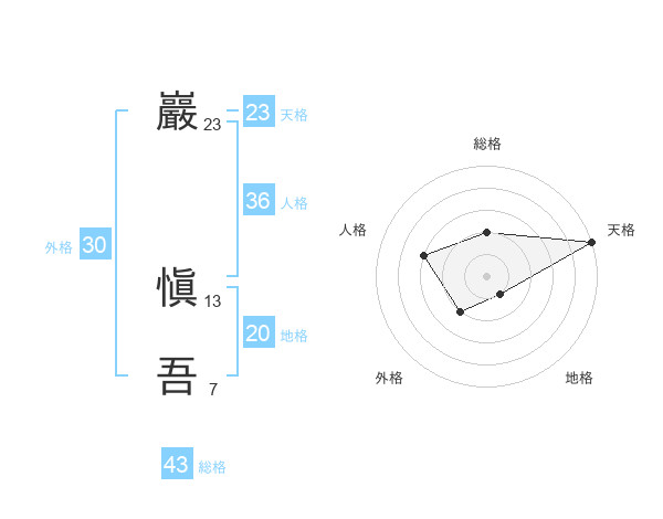 巖 愼吾さんの天格は23画の5点!