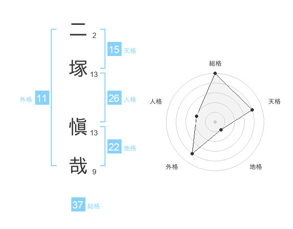 二塚 愼哉さんを姓名の画数から五運を鑑定