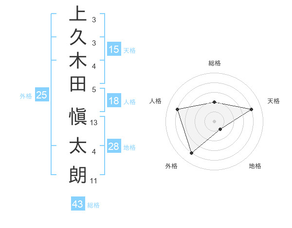 上久木田 愼太朗さんを姓名の画数から五運を鑑定